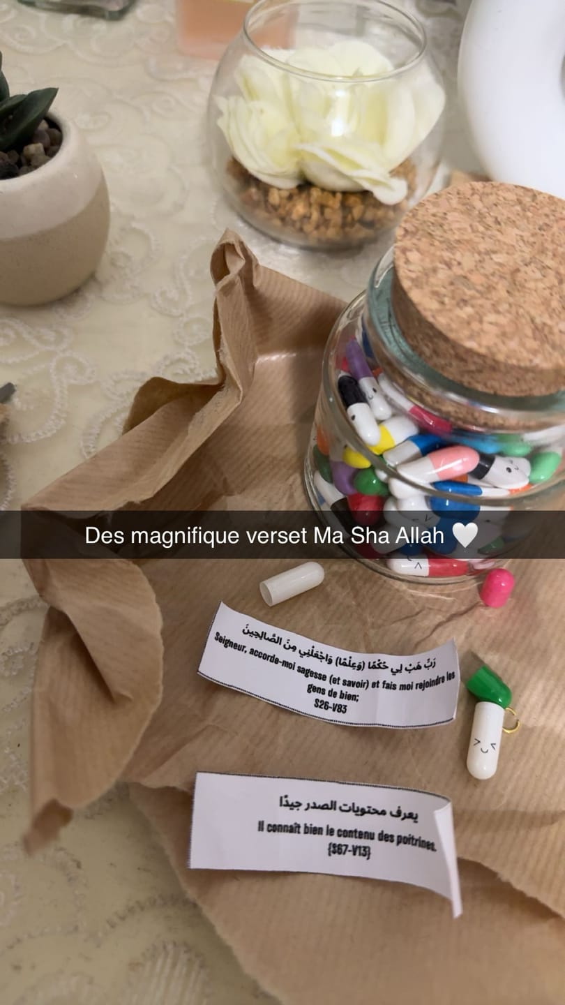 Très beau mash'allah ! Le meilleur cadeau que j'ai jamais fait. La personne était très contente du cadeau.Le colis est soigné et très bien emballé. Le bocal et les capsules sont juste magnifiques. J'adore❤️.Baraka Allahou fikoum pour ce concept👏. Très beau mash'allah ! Le meilleur cadeau que j'ai jamais fait. La personne était très contente du cadeau.Le colis est soigné et très bien emballé. Le bocal et les capsules sont juste magnifiques. J'adore❤️.Baraka Allahou fikoum pour ce concept👏. Très beau mash'allah ! Le meilleur cadeau que j'ai jamais fait. La personne était très contente du cadeau.Le colis est soigné et très bien emballé. Le bocal et les capsules sont juste magnifiques. J'adore❤️.Baraka Allahou fikoum pour ce concept👏.